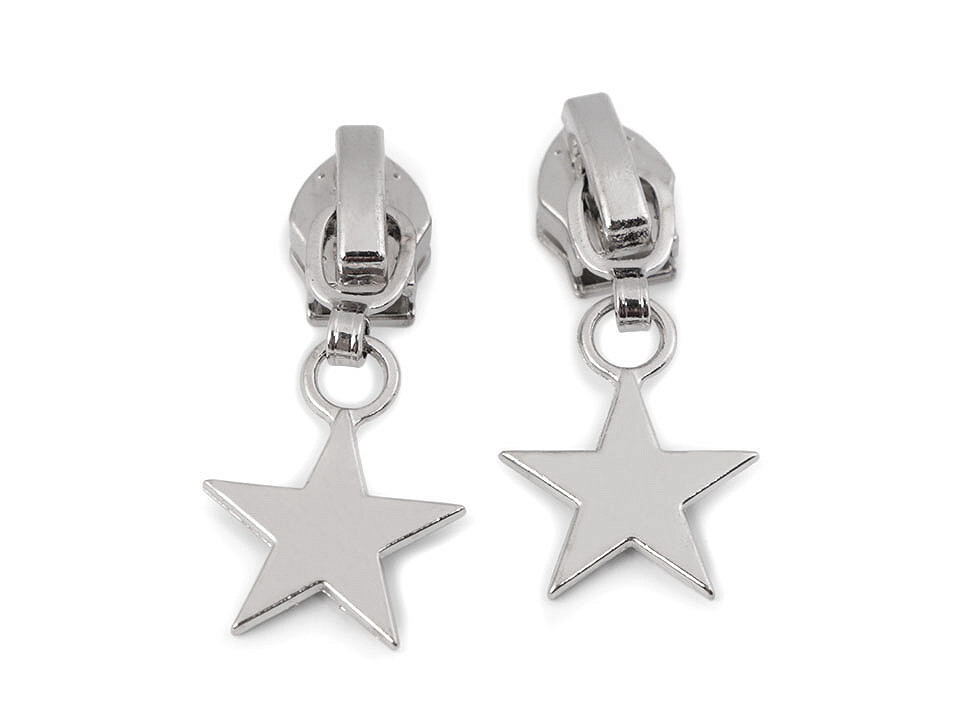 Jezdec ke spirálovým zipům No 5 srdce, hvězda, květ - 30 ks - 3 nikl hvězda