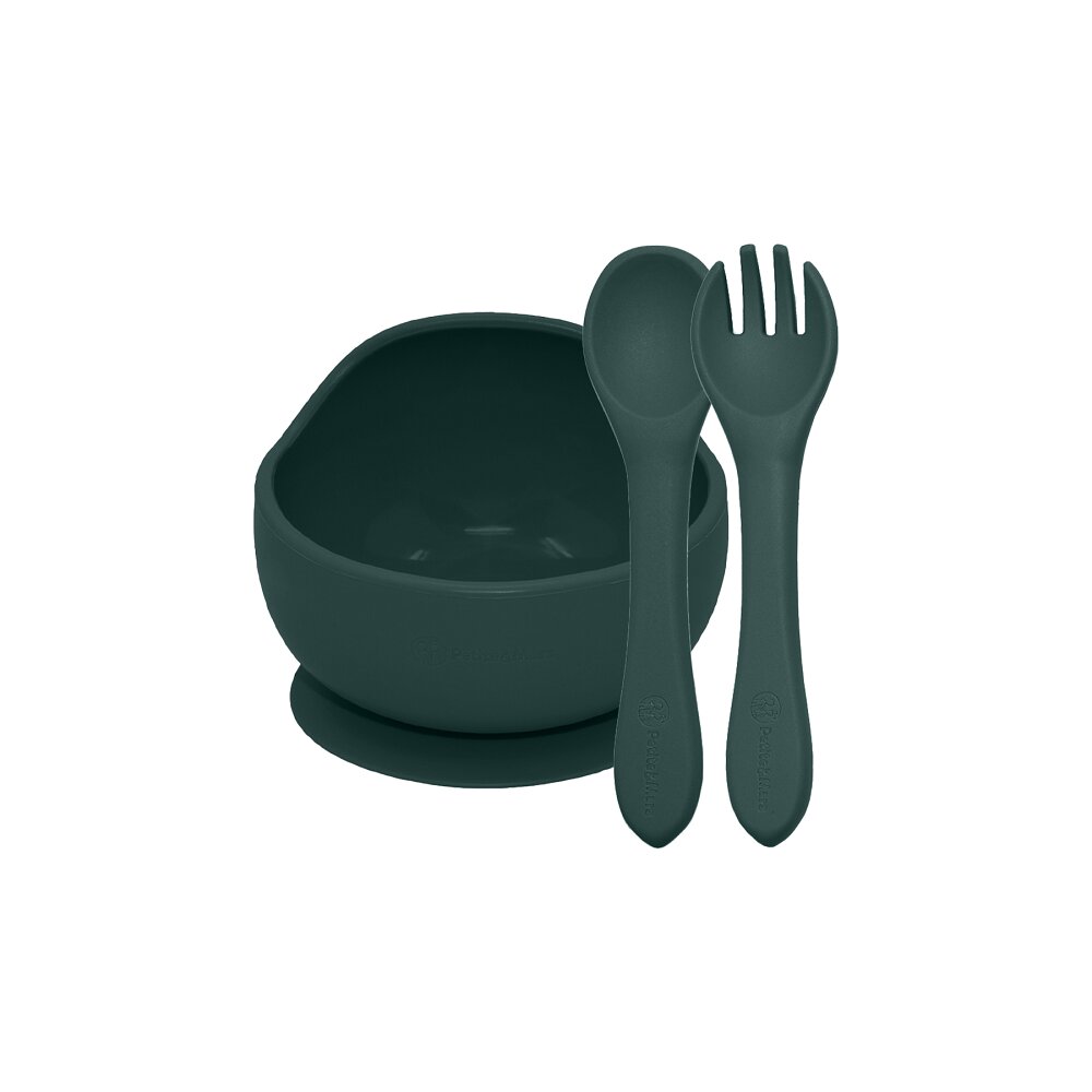 PETITE&MARS Set jídelní silikonový TAKE&MATCH 2 ks miska + příbor Misty Green 6m+