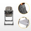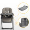Dzięki 6-stopniowej regulacji wysokości oraz możliwości demontażu tacki, rodzic z łatwością dopasuje krzesełko do każdego stołu. Regulacja odległości tacki od siedziska pozwala na idealne dostosowanie do bieżących potrzeb dziecka.