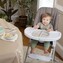 - Příprava jídla bude pro rodiče jednoduchá, protože talíř Twist & Dine lze ohřívat v mikrovlnné troubě! Kromě toho, jak dítě roste, velký pultík se nastavuje do 3 poloh; pultík se při skladování připevňuje k opěradlu židle.