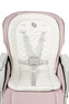 Tapicerka z ekoskóry zapewnia komfort użytkowania i łatwe czyszczenie - wystarczy przetrzeć powierzchnię wilgotną ściereczką, by usunąć codzienne zabrudzenia. Krzesełko zostało wyposażone w dodatkową, miękką poduszkę, zapewniającą idealne podparcie i wygodę podczas każdego posiłku. Demontowana wierzchnia warstwa tacki, którą można szybko zdjąć i dokładnie umyć - to idealne rozwiązanie dla utrzymania higieny po każdym posiłku.