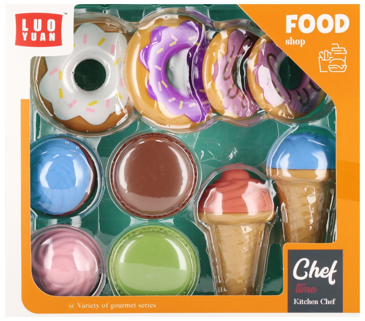 Zalety produktu: Zaproś przyjaciół na pyszny Deser. Dzięki zestawowi słodkości od MEGA CREATIVE, nie musisz się martwić o zadowolenie swoich gości Na pewno tym deserem przekonasz ich do częstszych wizyt u siebie zapewniając smakołyki. Zawartość zestawu: 2 x mufinki, 2 x makaroniki, 2 x lody w wafelku, 4 x donaty. Całość wykonana z plastiku. Wymiary/waga/baterie: wymiary opakowania dł. x wys. x gł. cm : 21x19x5, waga produktu bez opakowania kg : 0,09 kg, waga produktu w opakowaniu kg : 0,17 kg, nie wymaga zasilania bateriami. Zestaw przeznaczony dla dzieci w wieku: 3 . Pakowany w kartonik z okienkiem. W kartonie zbiorczym po 60 szt.