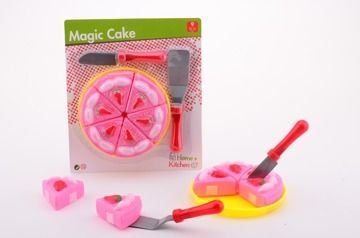 Magický dort - sen každého malého cukráře. Sada obsahuje dort, nůž na dort, talíř a naběrátko. Dort si může malý cukrář rozkrájet a nandat pomocí naběrátka, vše je spojeno magnety.