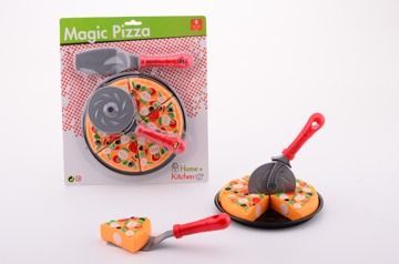 Magická pizza - sen každého malého kuchaře. Sada obsahuje pizzu, kráječ na pizzu, pánvičku a naběračku. Pizzu si může malý kuchař rozkrájet a nandat pomocí naběrátka, vše je spojeno magnety.