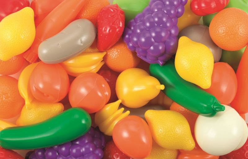 Makety potravin představují plno vitamínů díky různým druhům ovoce a zeleniny, obsahuje 50 ks.