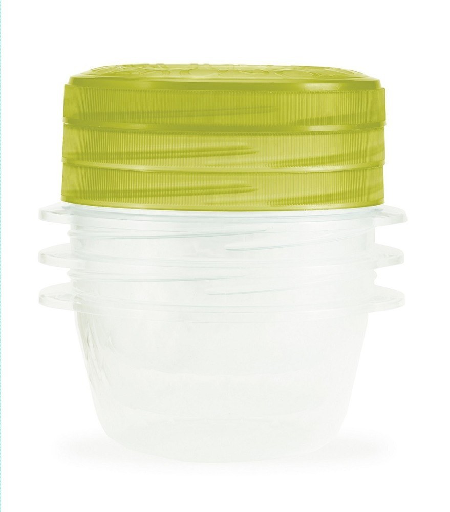 Set potravinových boxů. Sada obsahuje 3 plastové transparentní boxy se zeleným víkem o objemu 0,5L. Ideální pro uchovávání menších potravin v ledničce, či na cesTách. Praktické dózy na potraviny byly vyrobeny z materiálů té nejvyšší kvality. Výrobky jsou opatřeny certifikátem povolujícím kontakt s potravinami.Vhodné do mikrovlnné trouby (bez víka), mrazničky i chladničky.