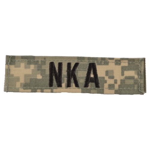 Nášivka s označením NKA (No Known Allergies), která sděluje, že netrpíte žádnými alergiemi. číst celé