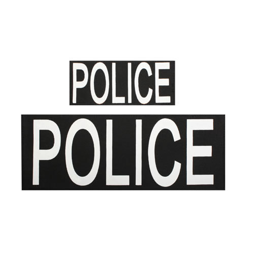 Sada dvou kusů nášivek s nápisem POLICE. Malá 6 x 14,5 cm vhodná na přední stranu. Velká 10 x 27 cm vhodná na záda. Obě nášivky jsou na suchém zipu.