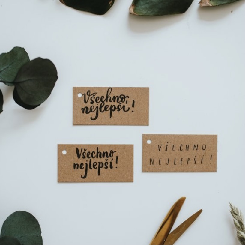Při vytváření designu jmenovek jsme vycházely z naší osobní potřeby. Vytvořily jsme výrobek, který samy rády používáme a dodáváme pomoci něho zabaleným dárkům šmrnc navíc.