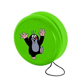 Super jojo z hladkého dřeva s jednoduchým obrázkem od Zdeňka Milera- večerníčkovým Krtečkem. Jojo vypadá jako makronka, je velká kolem pěti centimetrů a nahoru a dolů jezdí po tenkém provázku. cena je naprosto úžasná ve srovnání s kvalitou. Kéž by všechny hračky odpovídali ceně. Potvrdila jsem si, že je opravdu lepší sázet na osvědčené značky, jakou Detoa je, nemusela jsme tak vyhodit peníze za dvě nefunkční plastová jojo.