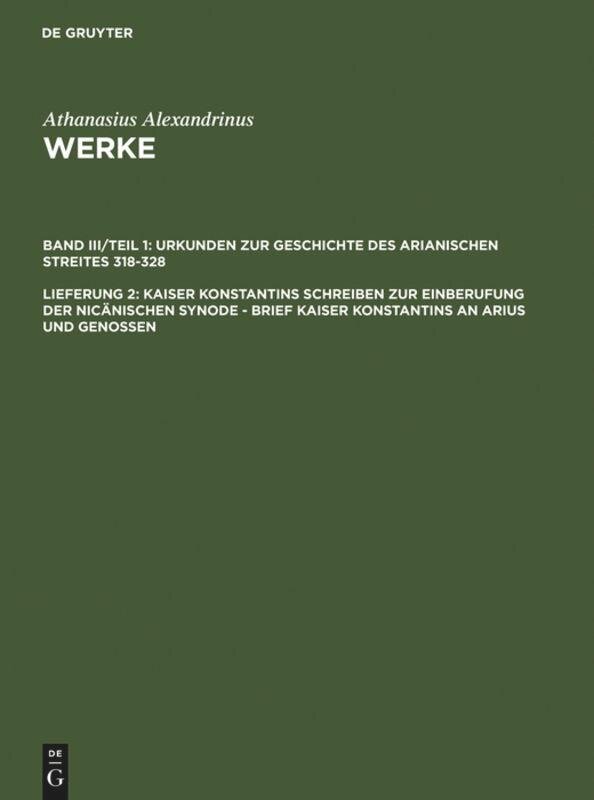Kaiser Konstantins Schreiben zur Einberufung der nicänischen Synode - Brief Kaiser Konstantins an Arius und Genossen