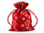 Vánoční pytlík zdobí potisk vloček. Snadno se uzavírá pomocí dvou stahovacích šňůrek. Je pevný.Můžete jej použít na zabalení menších dárků, je krásný i jako dekorace na Vánoce.