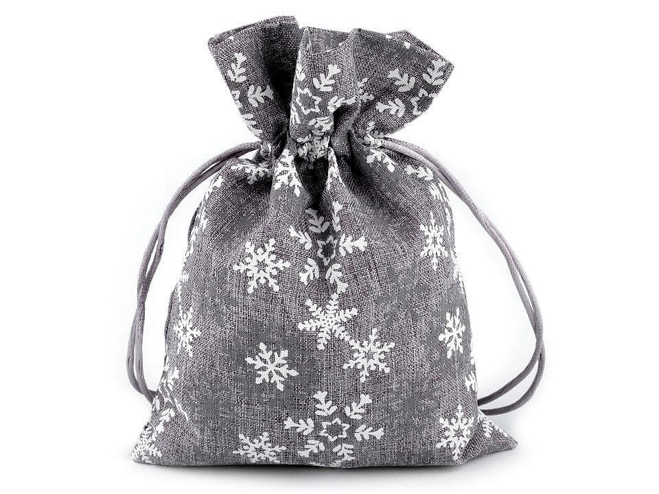 Vánoční dárkový pytlík vločky 13x18 cm - 10 ks - 2 šedá