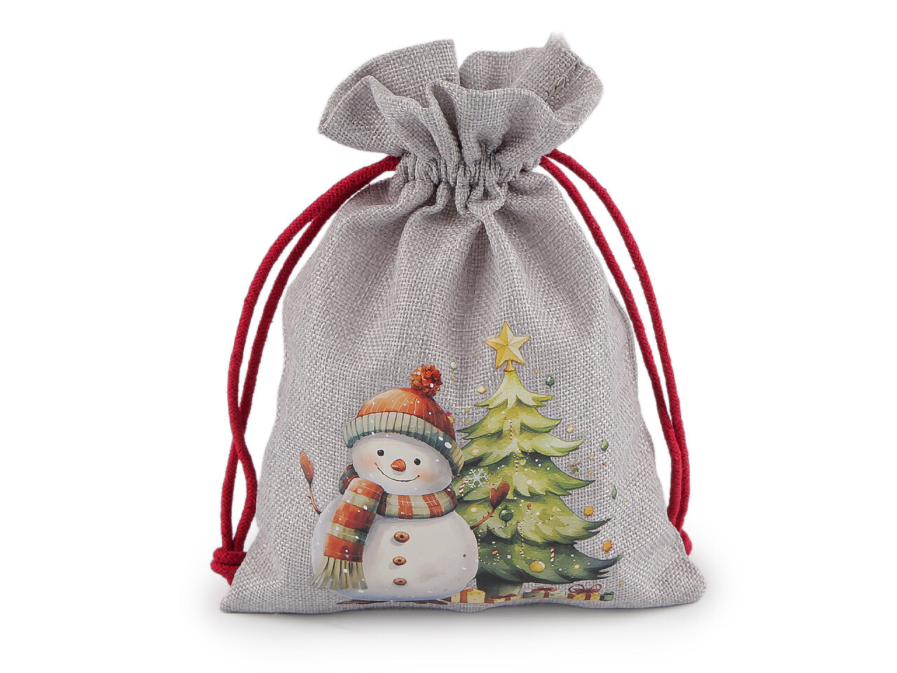 Vánoční dárkový pytlík sněhulák 13x18 cm imitace juty - 10 ks - 2 šedá světlá