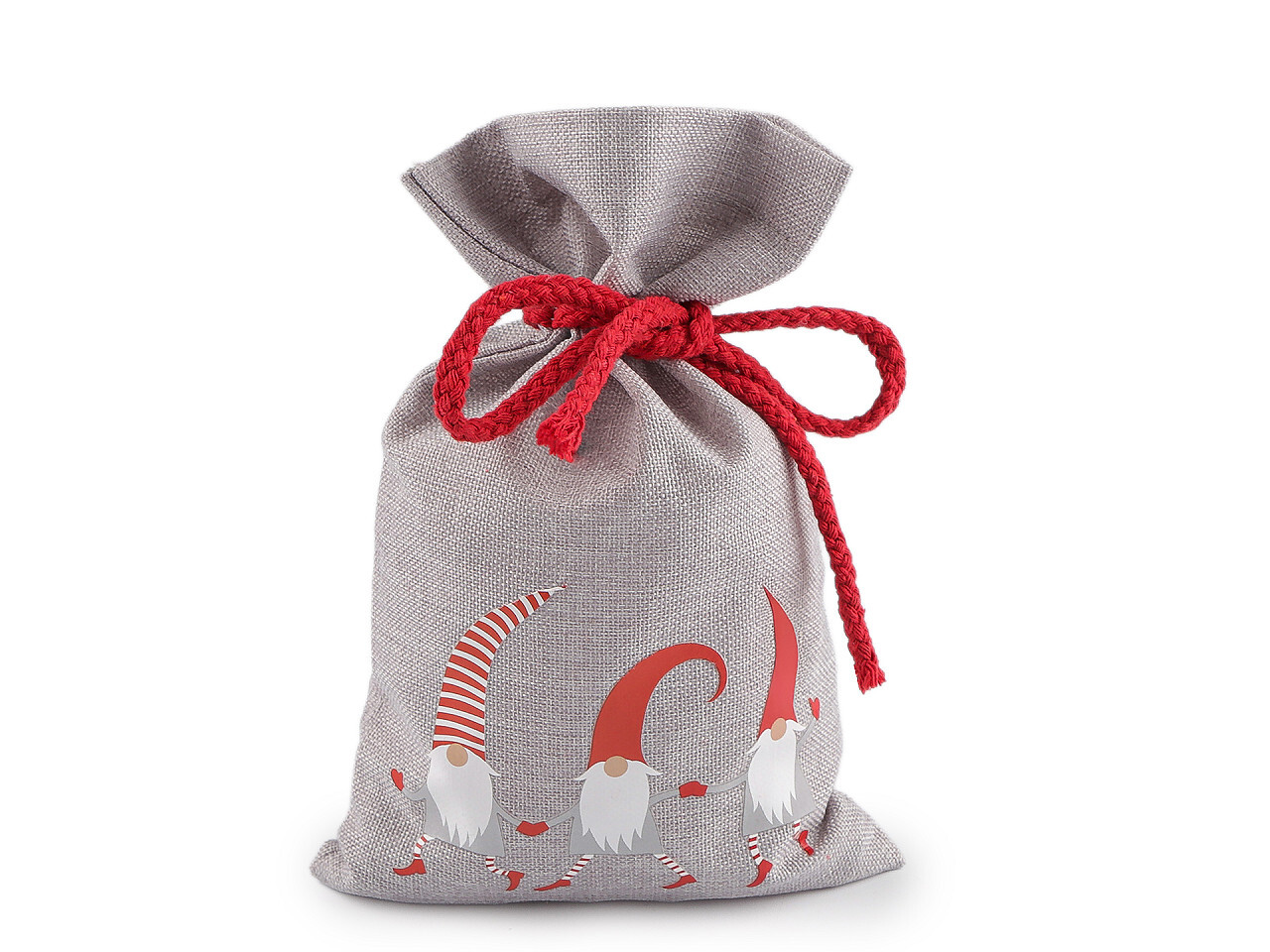 Vánoční dárkový pytlík skřítek 15x25 cm imitace juty - 10 ks - šedá světlá