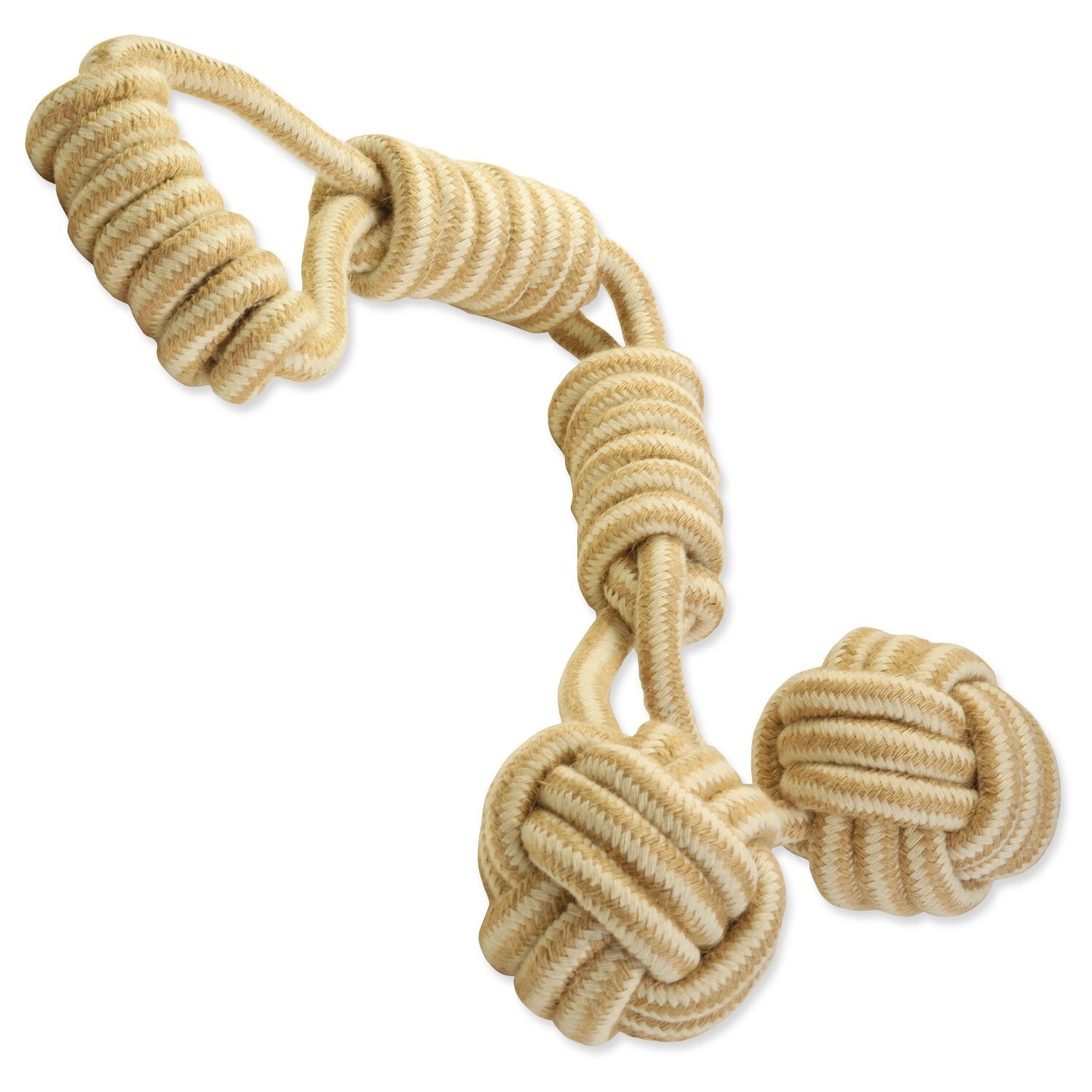 Tato hračka je navržena tak, aby vydržela časté tahání a okusování, čímž podporuje přirozený lovecký a hravý pud psů. Jutové madlo poskytuje pevný úchop nejen pro psa, ale i pro vás, což umožňuje bezpečnou a zábavnou hru na přetahování. Součástí jsou také dva pevné míčky, které přidávají další možnosti využití - můžete je házet, honit nebo si s nimi jen tak užívat společné chvíle plné energie.