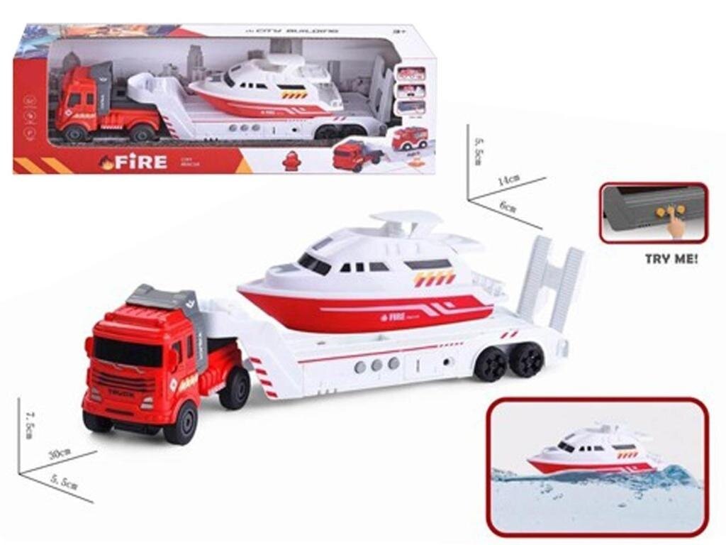 Auto z przyczepą + motorówka dźwięk open box 37x13x7,5cm číst celé