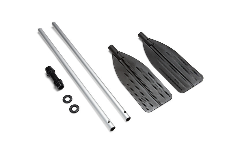 Odolná a lehká hliníková pádla na kajak, možnost použití buď samostatně 2 pádla 122 cm, nebo dohromady v délce 244 cm, lehká odolná, hliníková držadla, kroužek proti vyklouznutí vesel.