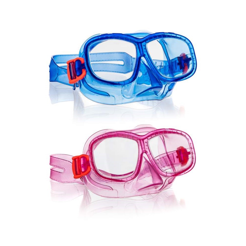 Tato dětská potápěčská maska nabízí kvalitní polykarbonátový dělený zorník, který zajišťuje skvělou průhlednost a odolnost vůči poškrábání. Pohodlná lícní část a popruh z PVC se přizpůsobí dětskému obličeji a zajistí pevné, ale příjemné uchycení masky, aby voda zůstala venku. Vyberte si z atraktivních barev - modré nebo růžové, které potěší malé plavce všechny věkové kategorie.