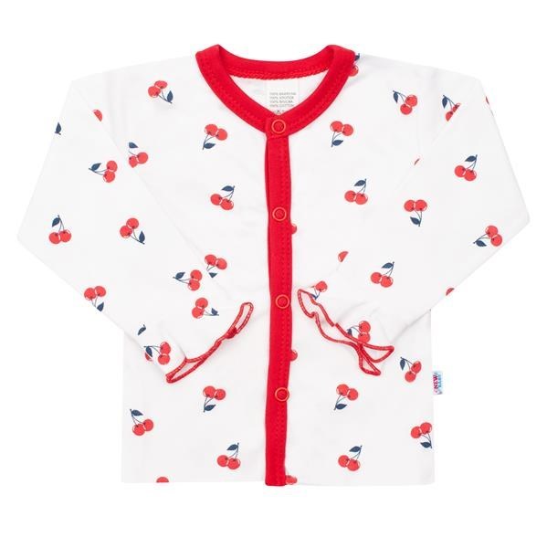 Kojenecký kabátek české značky New Baby Cherry. Kabátek je celopotištěný třešničkami s barevným lemováním podél celého zapínání na cvočky. Rukávky jsou ukončeny jemnou gumičkou a volánkem. Pro New Baby je velmi důležitá spokojenost zákaznika a právě proto vám nabízíme naši kvalitní holčičí letní kolekci Cherry. Složení: 100% bavlna.