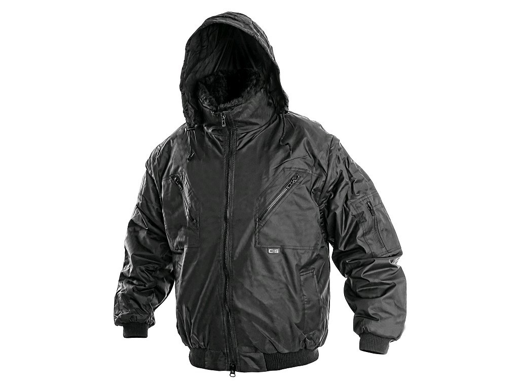 Zateplená bunda do pasu, odolná proti vodě a větru, větrání v podpaží, kapuce v límci, odnímatelný límec z umělé kožešiny, odnímatelné zateplené rukávy, rukávy a dolní okraj zakončeny pružnou úpletovou manžetou, lepené švy, kapsy.