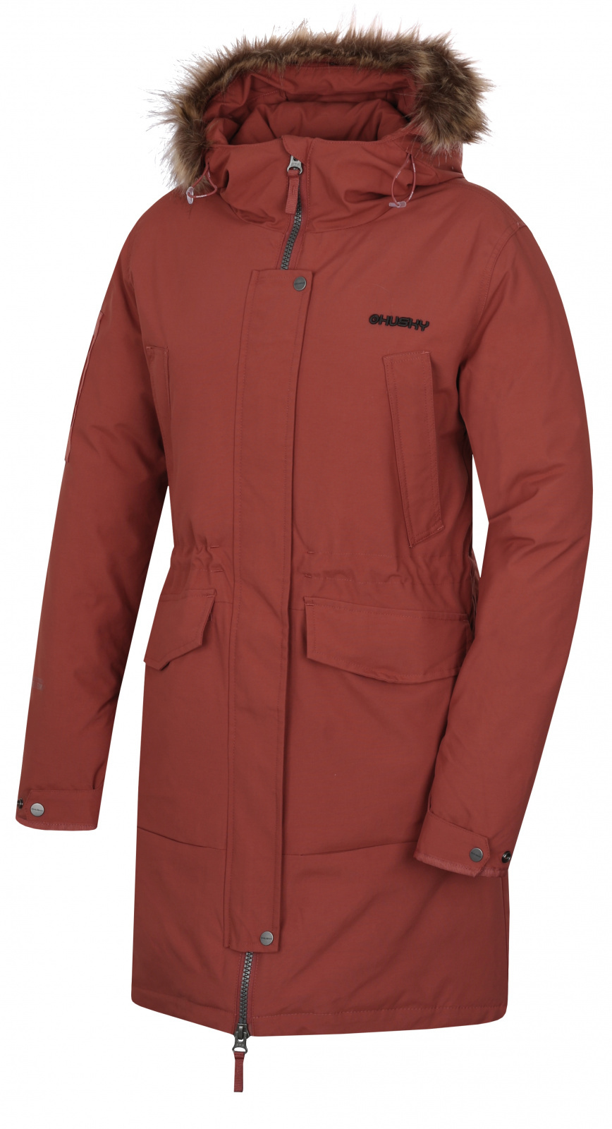 Silněji plněný hřejivý dámský zimní kabát s kapucí má podšívku kombinovanou s mikroplyšem, a proto ho nezaskočí ani ty největší mrazy. Membrána Husky Tech 10 000 tě podrží i při outdoorových aktivitách. Jde o pohodlný a teplý kabát pro každodenní nošení do přírody i do města. Materiál HUSKYTECH 10 000 pro nepromokavost a vysokou prodyšnost Jedinečné vlastnosti membrány s vodním sloupcem: 10 000 mm H2O a prodyšností: 10 000 g/m2/24 h zabraňují vniknutí molekul vody a umožnují snadný odvod vlhkosti. DWR vodoodpudivé vnější ošetření vrchní vrstvy materiálu oděvu zabraňuje prosakování vlkosti a voda tak okamžitě odtéká po povrchu ve formě kuliček.