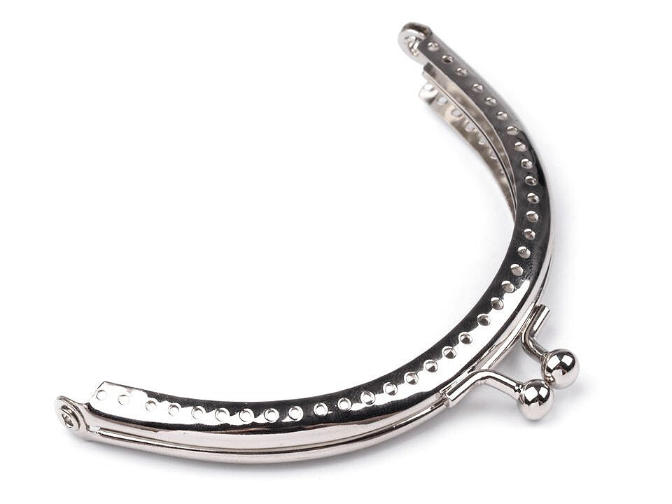Rámeček na výrobu kabelek a tašek se zapínáním. Vnitřní žlábky slouží k vložení látky, otvory se prošijí nití. Dírky jsou jen na vnější straně rámečku. Využijte tohoto zajímavého okrasného řešení a všijte dírkami i korálky.