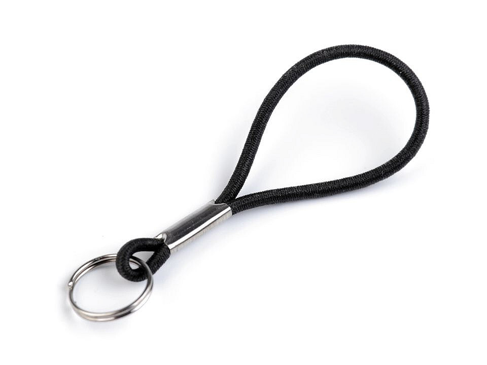 Poutko pružné s kroužkem k výrobě ozdob na tašky, andílky 65 mm - 100 ks - černá