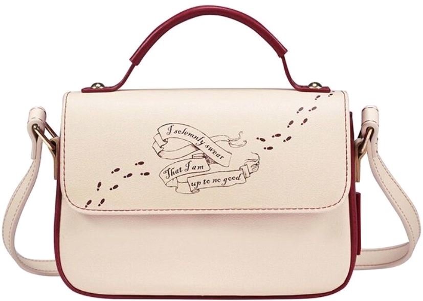 Bílá dámská kabelka s grafikou Maruaderovy mapy ze slavné filmové ságy Harry Potter. Kabelka má 2 popruhy - pro nošení v ruce a přes rameno.