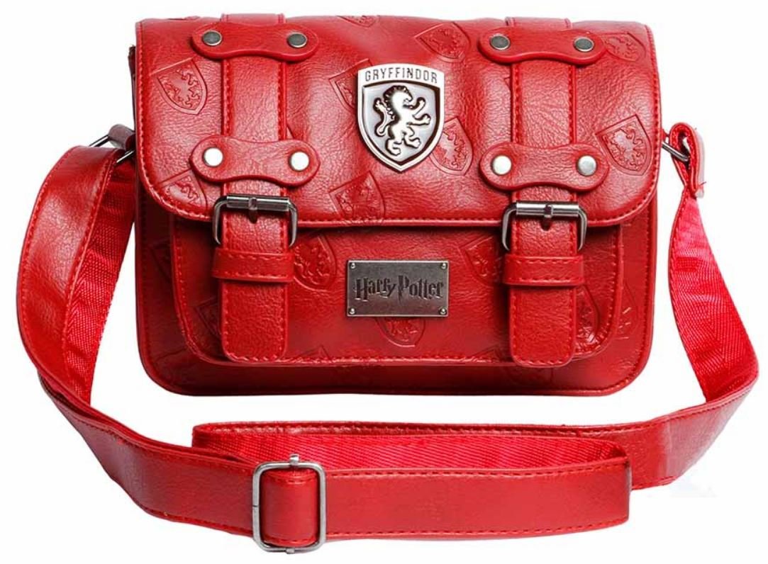 Červená dámská kabelka s popruhem přes rameno se znakem studentské koleje Nebelvír. Taška přes rameno s klopou a magnetickým zavíráním.