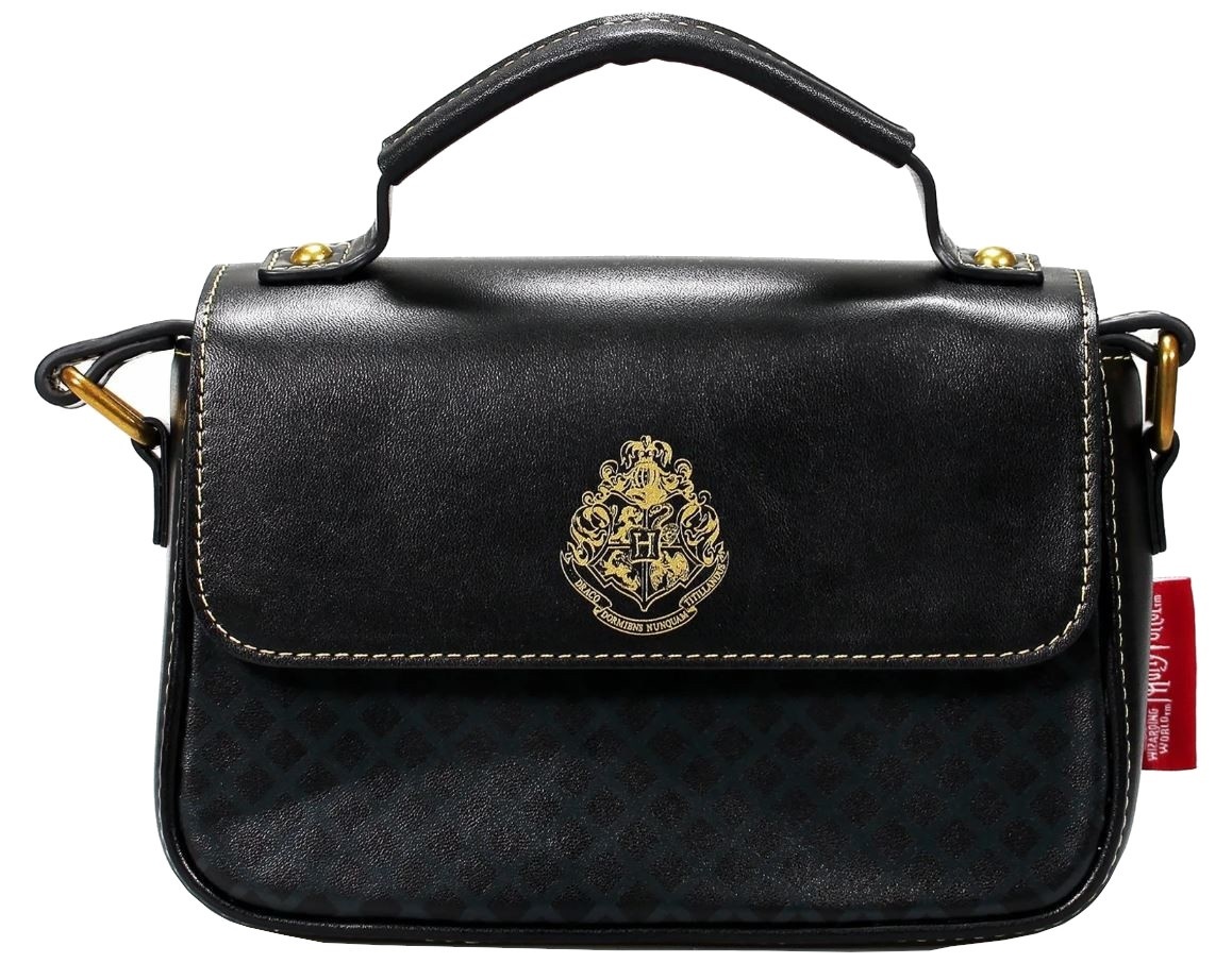 Černá dámská kabelka se zlatou grafikou erbu Bradavické školy čar a kouzel. Kabelka má řetízkový popruh, který se dá odepnout, takže ji můžete nosit i za poutko, nebo v ruce. Na zadní straně kabelky je zlaté logo ságy Harry Potter. Kabelka je vhodná pro všechny fanynky a fanoušky ságy.