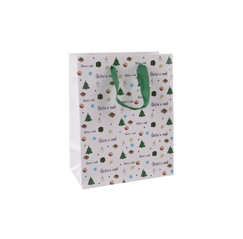 Dárková papírová taška s motivem Šťastné a veselé. Originál dekor Orion. Materiál papír, polyester (provázek). Rozměry 18 x 10 x 23 cm. EAN 8592381232467