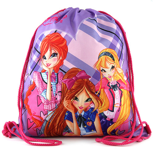 Perfektně zpracovaný vak vyrobený z odolného textilního materiálu s efektním potiskem víl z Winx Clubu zaručující minimální opotřebení a dlouhou životnost.Stylový a zároveň praktický pomocník na cesty, sport, obuv i pro běžné nošení. Dvě postranní šňůrky zajistí pevné uzavření a pohodlné nošení přes ramena.Vynikající pomůcka pro všechny školáky!Rozměry vaku: výška 37 cm, šířka 31 cm.Materiálové složení: 100% polyester.