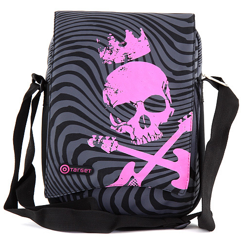 Taška do města Target černá s šedými ornamenty a růžovou lebkou