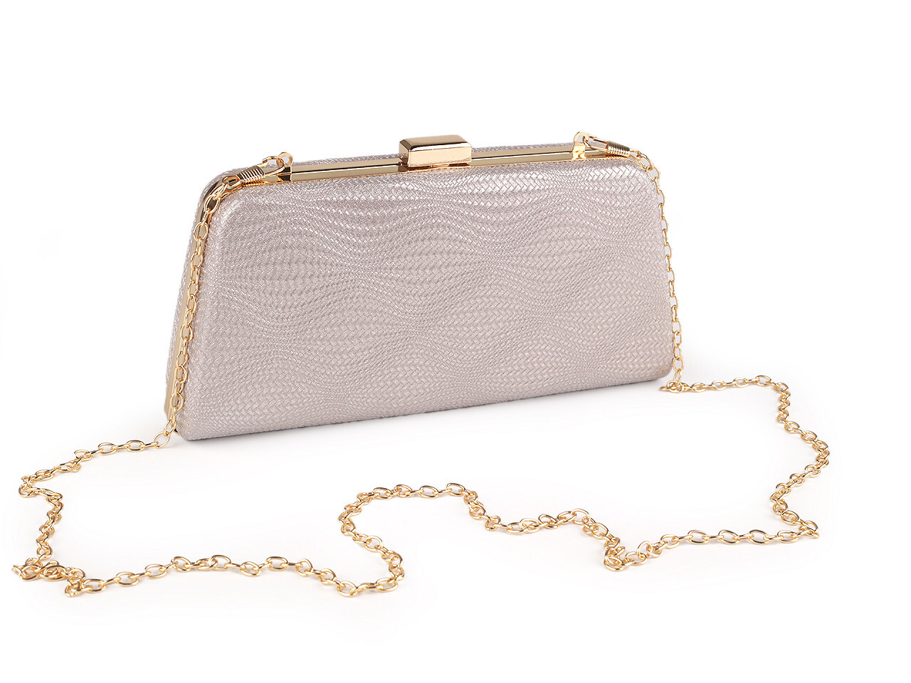 Malá společenská kabelka v elegantním odstínu champagne zlatá je ideálním doplňkem pro vaše večerní i slavnostní příležitosti. Díky svému originálnímu lesklému povrchu a výraznému zapínání vás nikdy nezklame, když chcete zazářit.