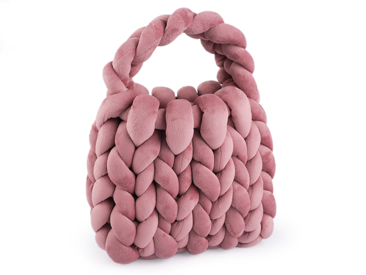 Kabelka z velvetové příze hand made 25x22 cm - 1 ks - 3 starorůžová