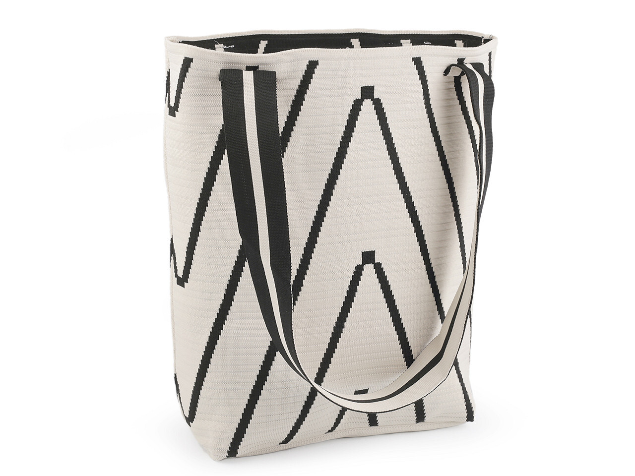 Vyrobena z pevné a zajímavé pleteniny, tato módní taška je odolná a zároveň lehká. Větší rozměry 36x34 cm nabídnou dostatek místa pro všechno, co potřebujete mít neustále po ruce - od nákupů přes plážové potřeby až po vaše denní nezbytnosti. Díky pevnému rozšířenému dnu taška dobře drží tvar a snadno se plní.