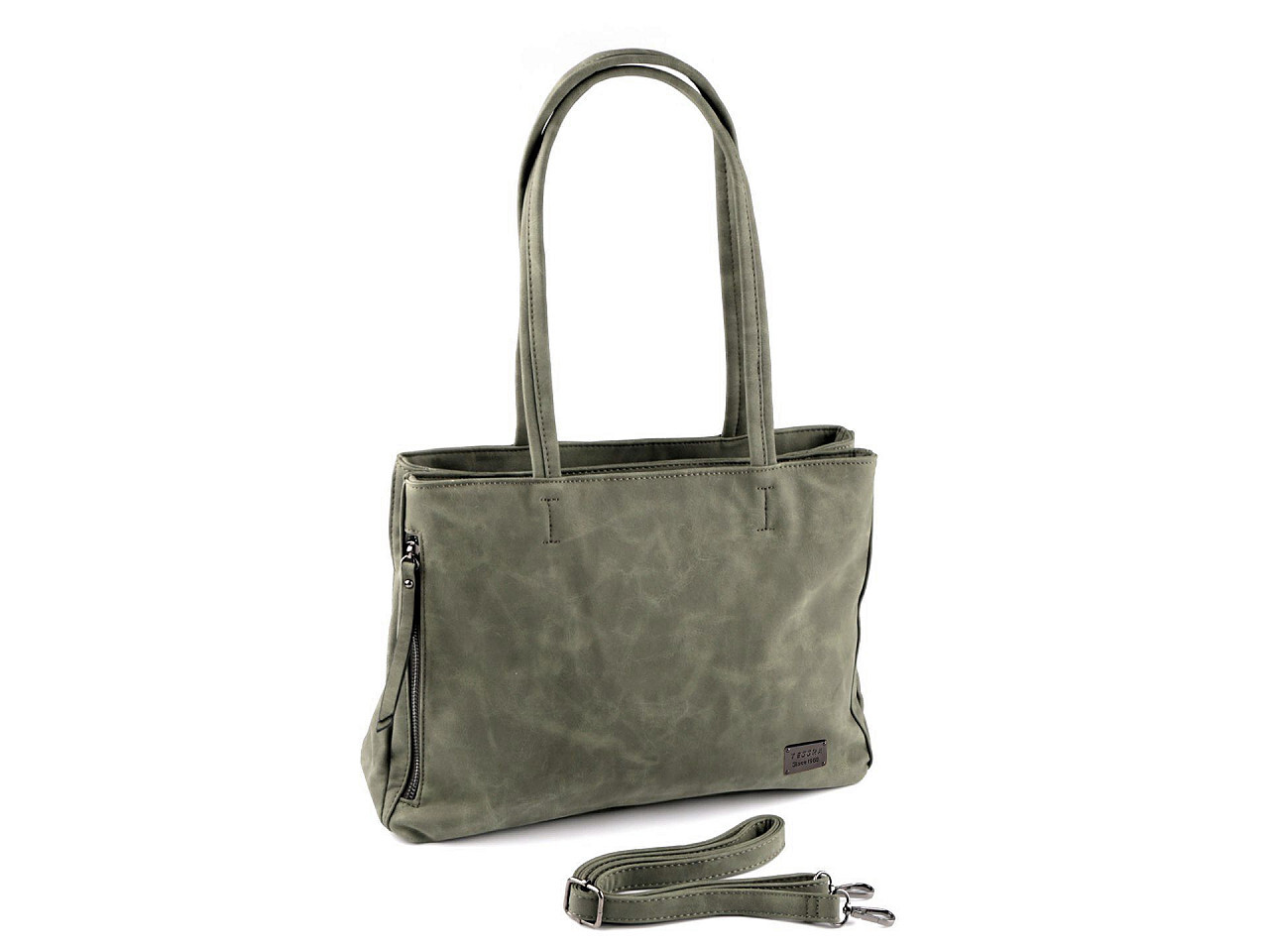 Kabelka z imitace broušené kůže 38x27 cm - 1 ks - 5 zelená khaki