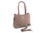 Velká módní kabelka se díky svému stylovému vzhledu a rozšířenému dnu stane oblíbenou společnicí. Přední stranu má ozdobenou kovovým štítkem. Díky syntetickému materiálu, který vypadá jako broušená kůže, má kabelka punc kvality.
