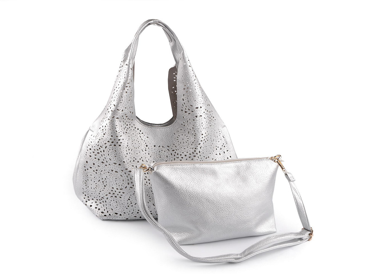 Kabelka s vysekávaným vzorem 2v1 43x26 cm - 1 ks - 7 stříbrná