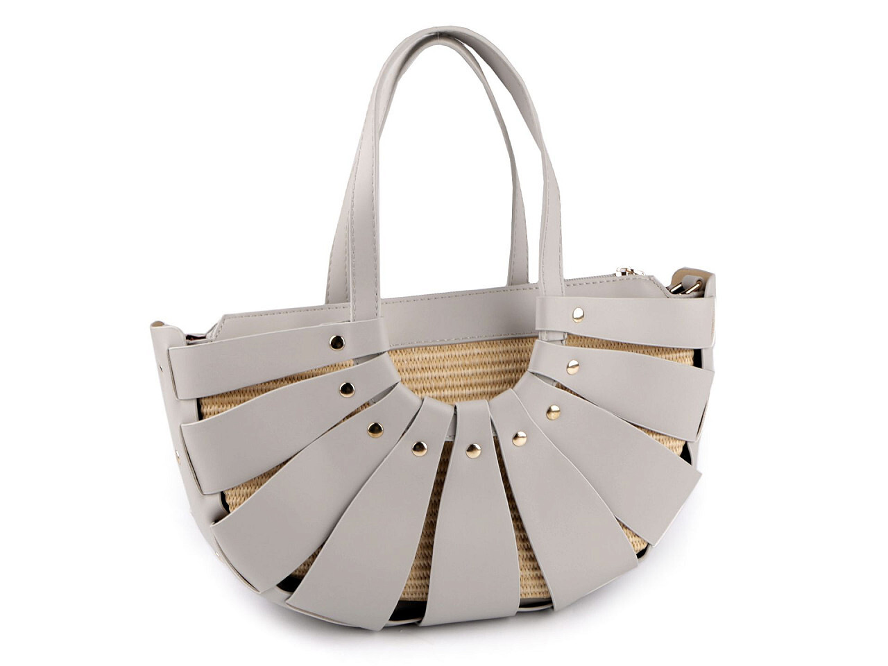 Letní kabelka se slámovou strukturou 35x20 cm - 1 ks - 4 šedá světlá