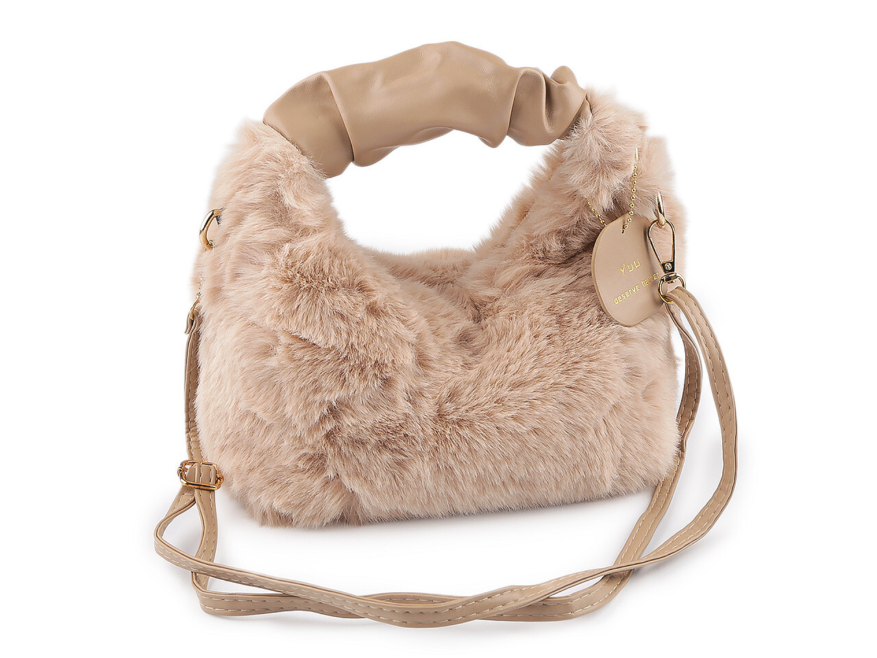 Kožešinová kabelka 24x21 cm - 1 ks - 2 béžová světlá