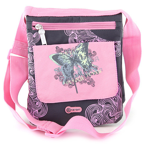 Kabelka přes rameno Target černá s růžovými ornamenty, s motivem motýla