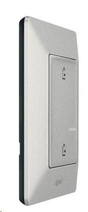 Valena Life with Netatmo bezdrátový ovládač scénářů "doma/mimo domov" (baterie CR2032 a oboustranná lepenka součást balení), zadní strana je zcela plochá (lze montovat na zeď, sklo, nábytek pomocí šroubů nebo oboustranné lepenky), scénáře se nastavují pomocí aplikace Home + Control - barva Hliník, dodáván s rámečkem v barvě Hliník