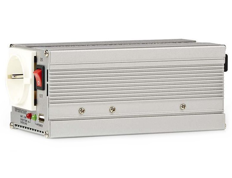 Měnič napětí s výkonem 300 W je ideální řešení pro napájení nejrůznějších elektrických spotřebičů určených pro síťové napájení. Vstupní napětí měniče je 12 V DC, výstupní napětí 230 V AC a účinnost 90 %. Takto můžete v nákladních automobilech, lodích či obytných vozech používat domácí spotřebiče, aniž byste museli investovat do speciálního vybavení pracujícího s napětím 12 V. Funkce Softstart pro plynulý náběh chrání zařízení před poškozením. Měnič je vybaven napájecí zásuvkou se zemnicím kolíkem (typ E) a jedním USB portem s výstupním napětím 5 V DC. Samozřejmostí je ochrana před vybitím baterie, zkratem na výstupu, přetížením, přepětím na vstupu, proti opačné polaritě baterií a tepelná ochrana. Součástí balení jsou kabely se svorkami k baterii a kabel pro připojení přímo do automobilové zásuvky.