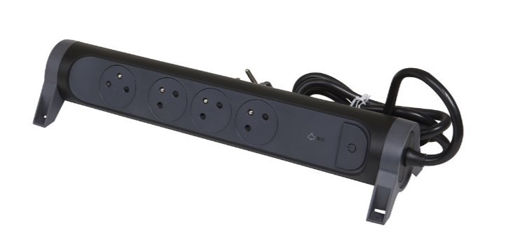 LEGRAND Revolution prodlužovací přívod s otočným tělem 4x2P+T, přepěťová ochrana, podsvícené VYP/ZAP, kabel 1,5m, černo-