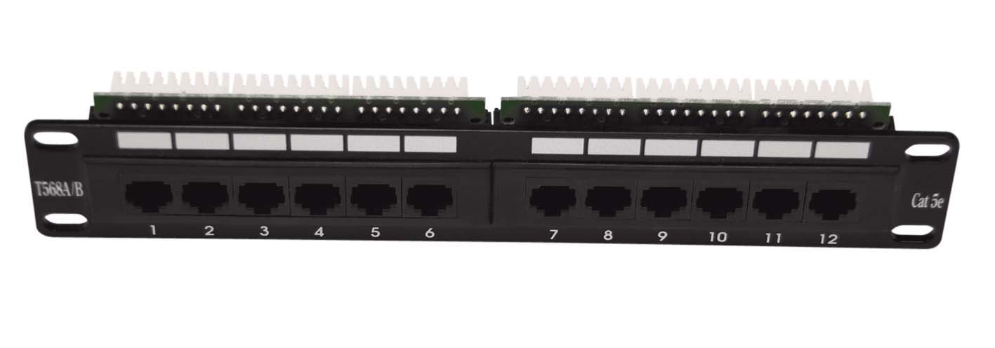 Patch panel, CAT5E, 10" provedení ,12 xUTP RJ45, černá barva
