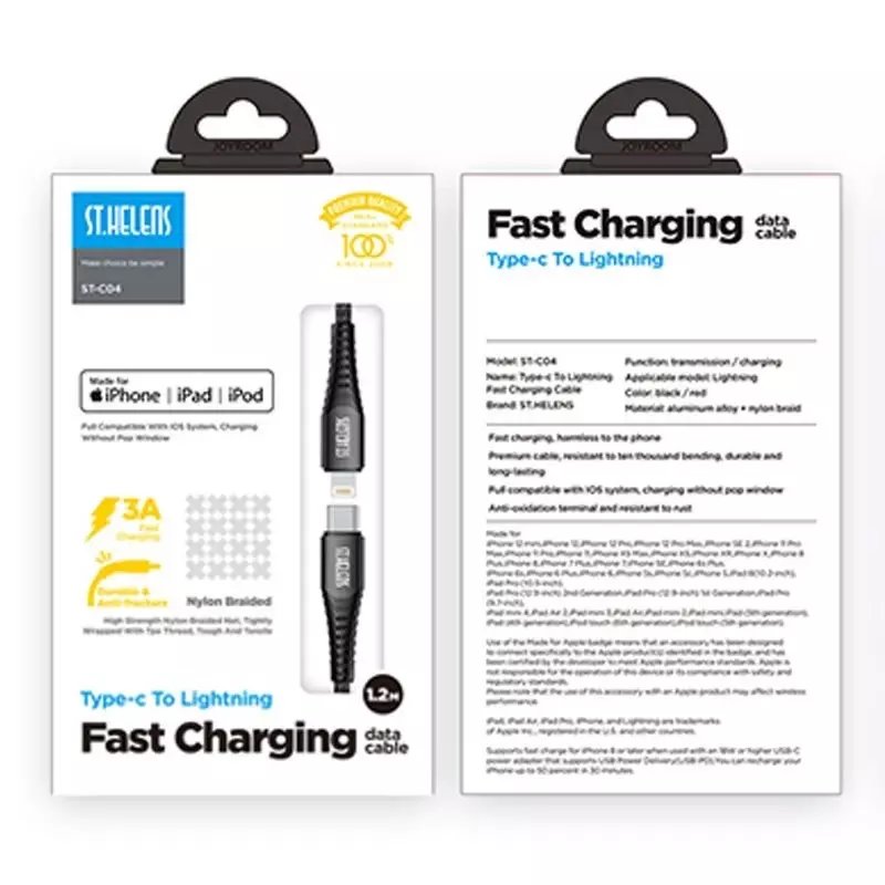 Joyroom MFI kabel USB typu C – Lightning 2.1A 1.2m černý (ST-C04 1.2M černý)