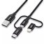 USB kabel se 3 konektory: USB typu C, micro USB a Lightning. Jediný kabel, který umožňuje nabíjet jakékoli zařízení vybavené výše zmíněnými konektory a přenášet data např. do a z počítače do telefonu. Ideální pro lidi s několika zařízeními od různých výrobců.