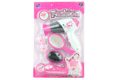 Sada krásy s fénem na baterie. Balení obsahuje fén, hřeben, zrcátko a sponky. Baterie nejsou součástí výrobku. Rozměr balení cca 21,5 x 32 x 6 cm. Věk 3+ číst celé